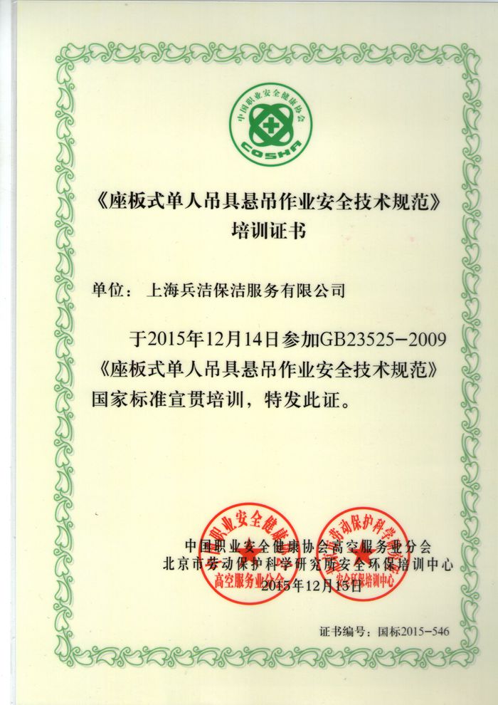 上海兵潔環(huán)境服務(wù)有限公司成立于2005年9月,專業(yè)從事外墻清洗、內(nèi)(外)墻粉刷、開荒清潔、石材翻新養(yǎng)護(hù)、外墻維修、地毯清洗,辦公樓、住宅樓、商場、工廠、賓館、醫(yī)院、展覽展示館等各類物業(yè)場所的日常保潔服務(wù)。公司現(xiàn)有員工1200余人,服務(wù)項(xiàng)目200多個,其中外墻清洗服務(wù)面積1500多萬平方米,日常保服務(wù)面積500多萬平方米。公司秉承“誠信務(wù)實(shí)、安全高效、吃苦耐勞、勤勉細(xì)致” 的企業(yè)作風(fēng)和“專業(yè)來自敬業(yè),服務(wù)創(chuàng)造品質(zhì)”的基本理念,全面導(dǎo)入ISO9001:2008質(zhì)量管理體系認(rèn)證證書,ISO14001:2004環(huán)境管理體系認(rèn)證證書,OHSAS18001:2007